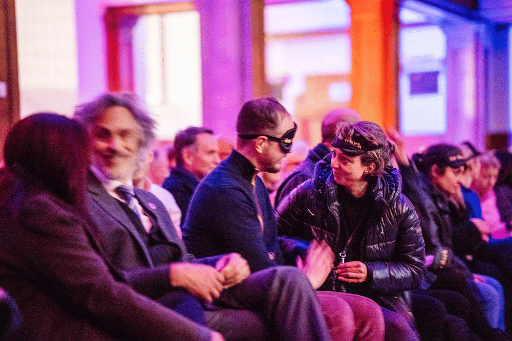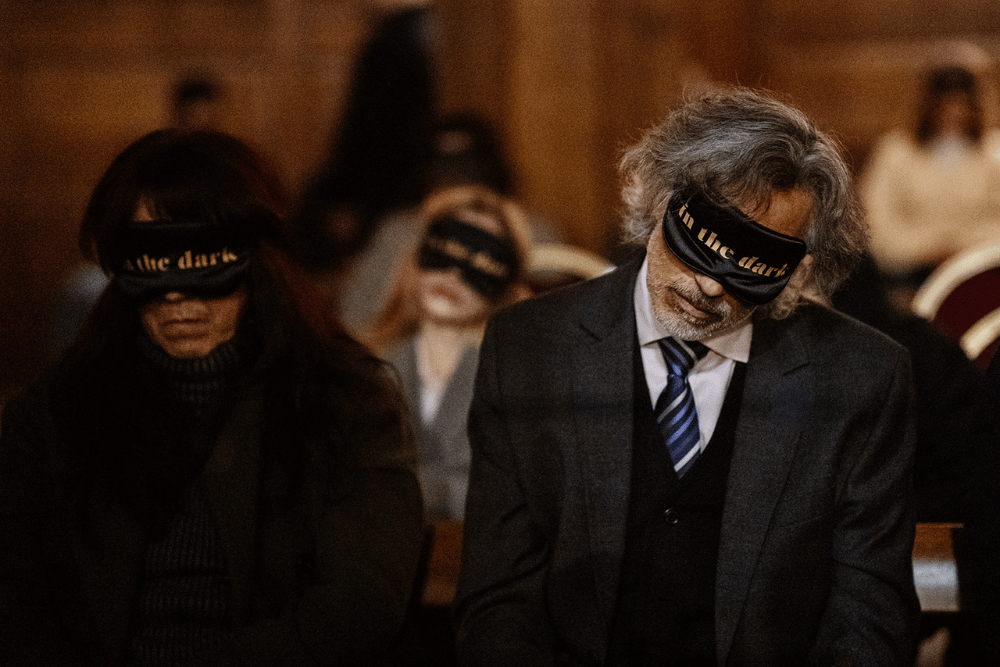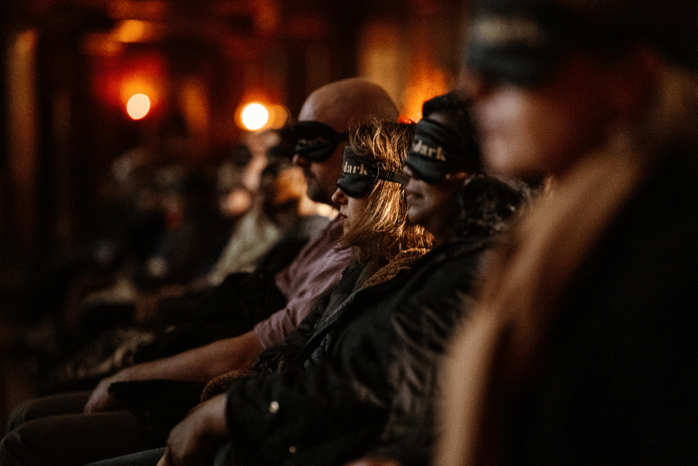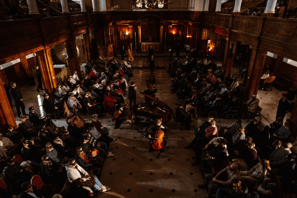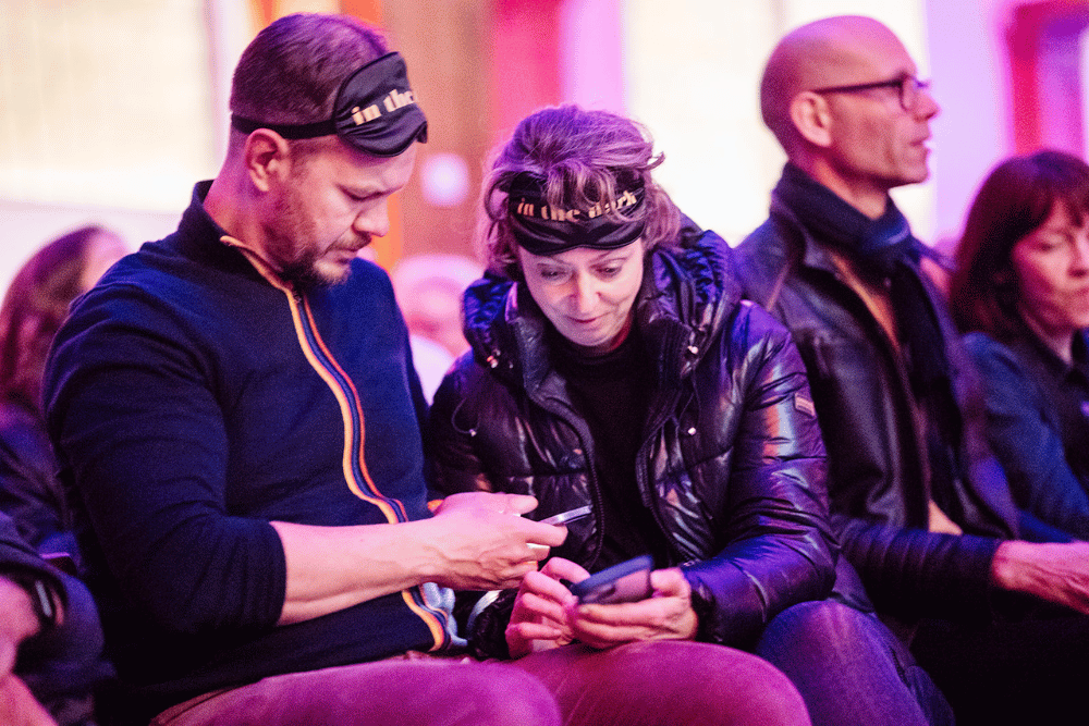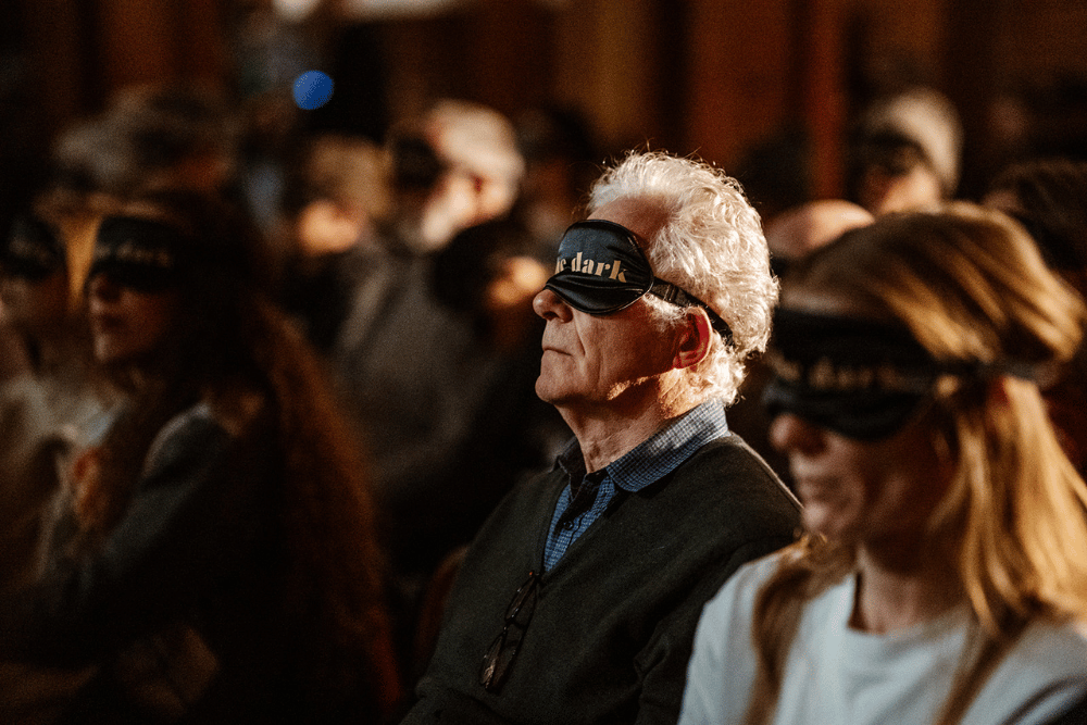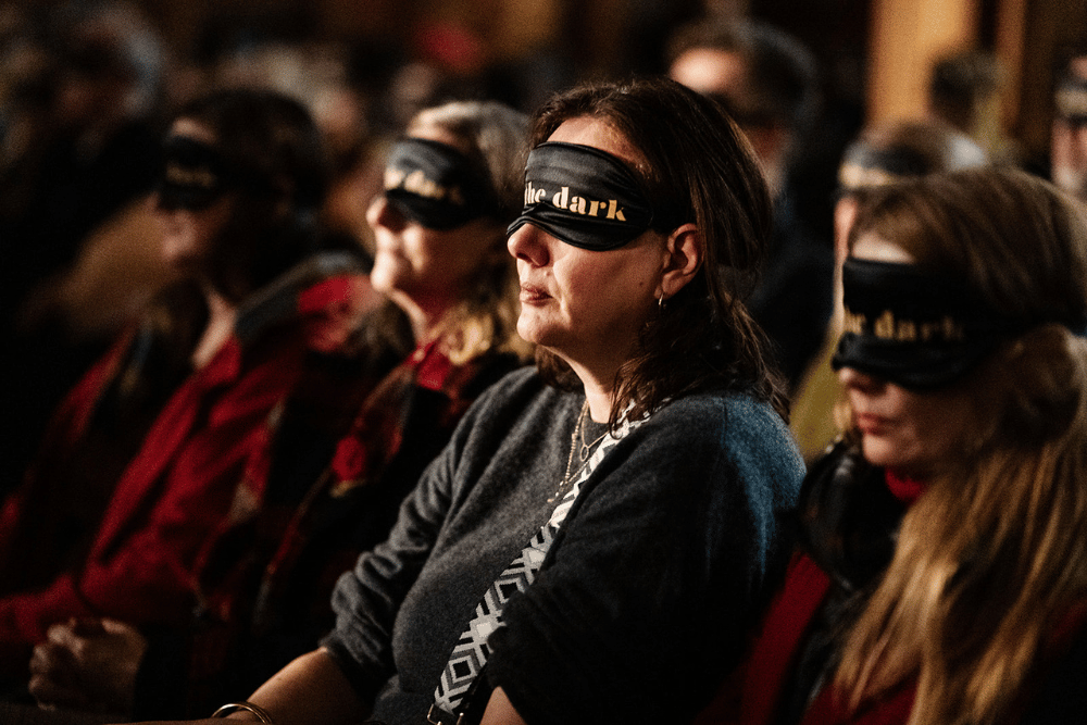in the dark is unlike anything you've experienced. 30 live, unamplified musicians, everywhere around you. complete darkness. zero distractions. just you and the music.