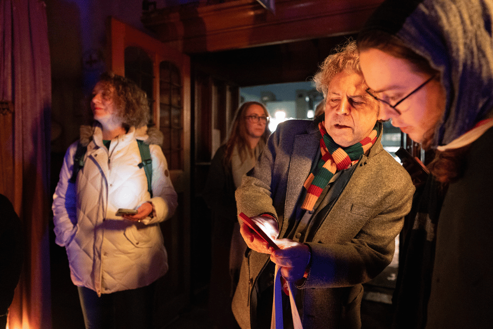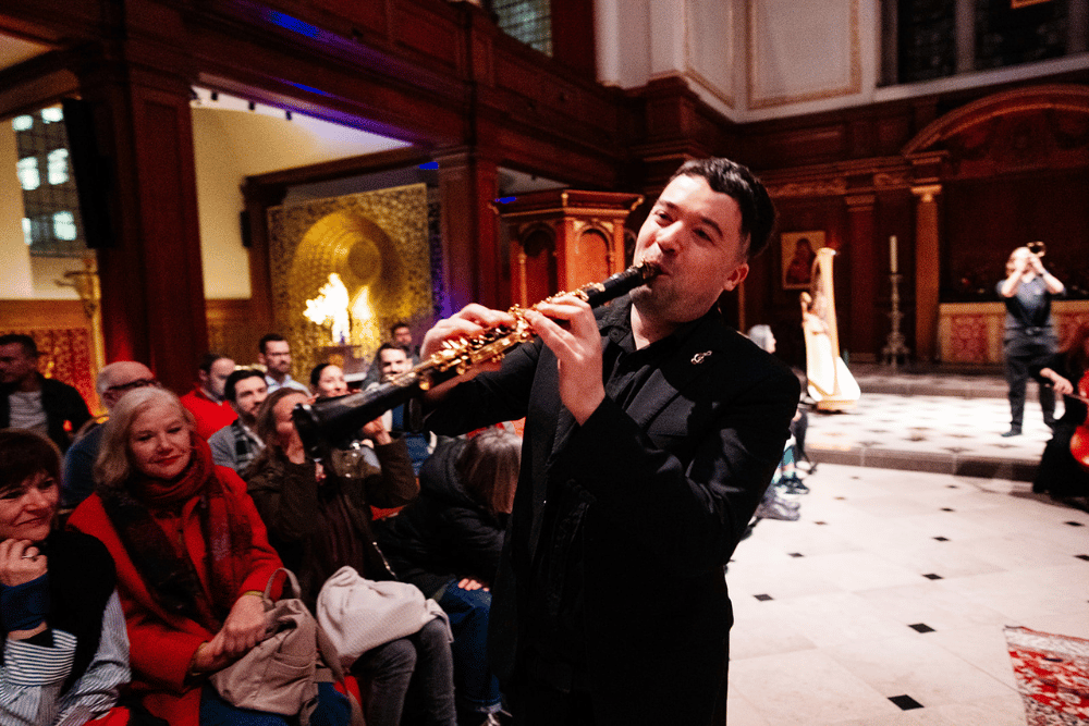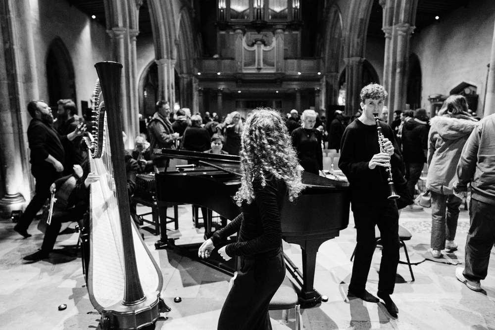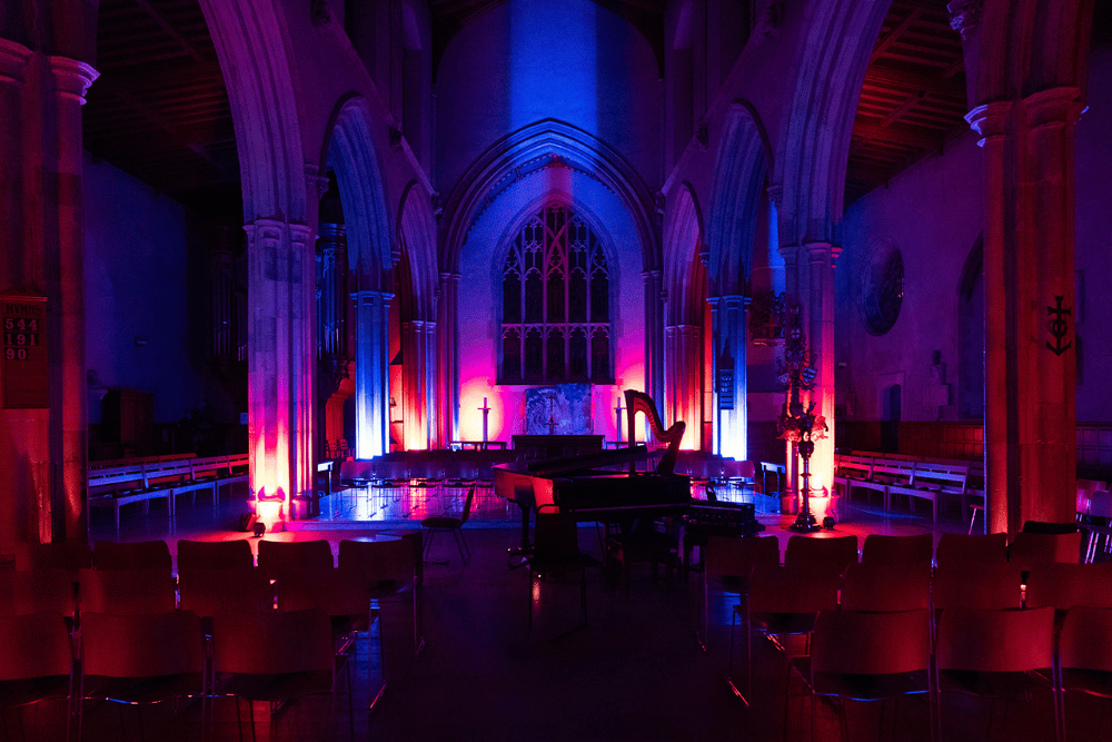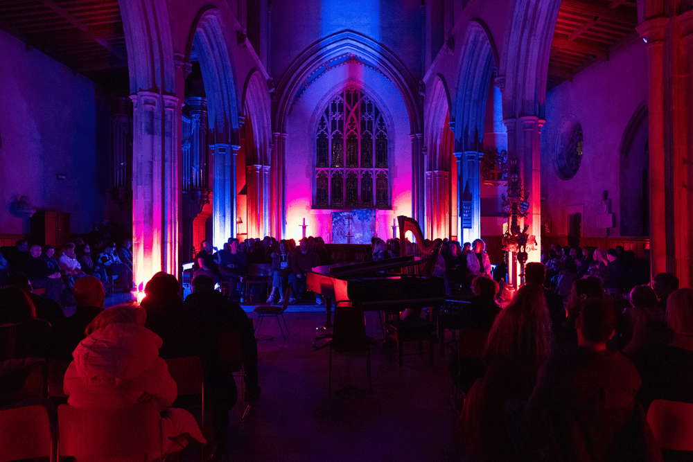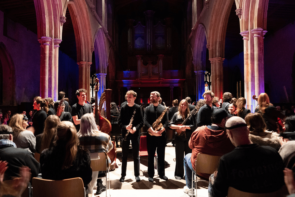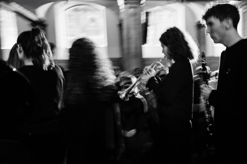 in the dark is unlike anything you've experienced. 30 live, unamplified musicians, everywhere around you. complete darkness. zero distractions. just you and the music.